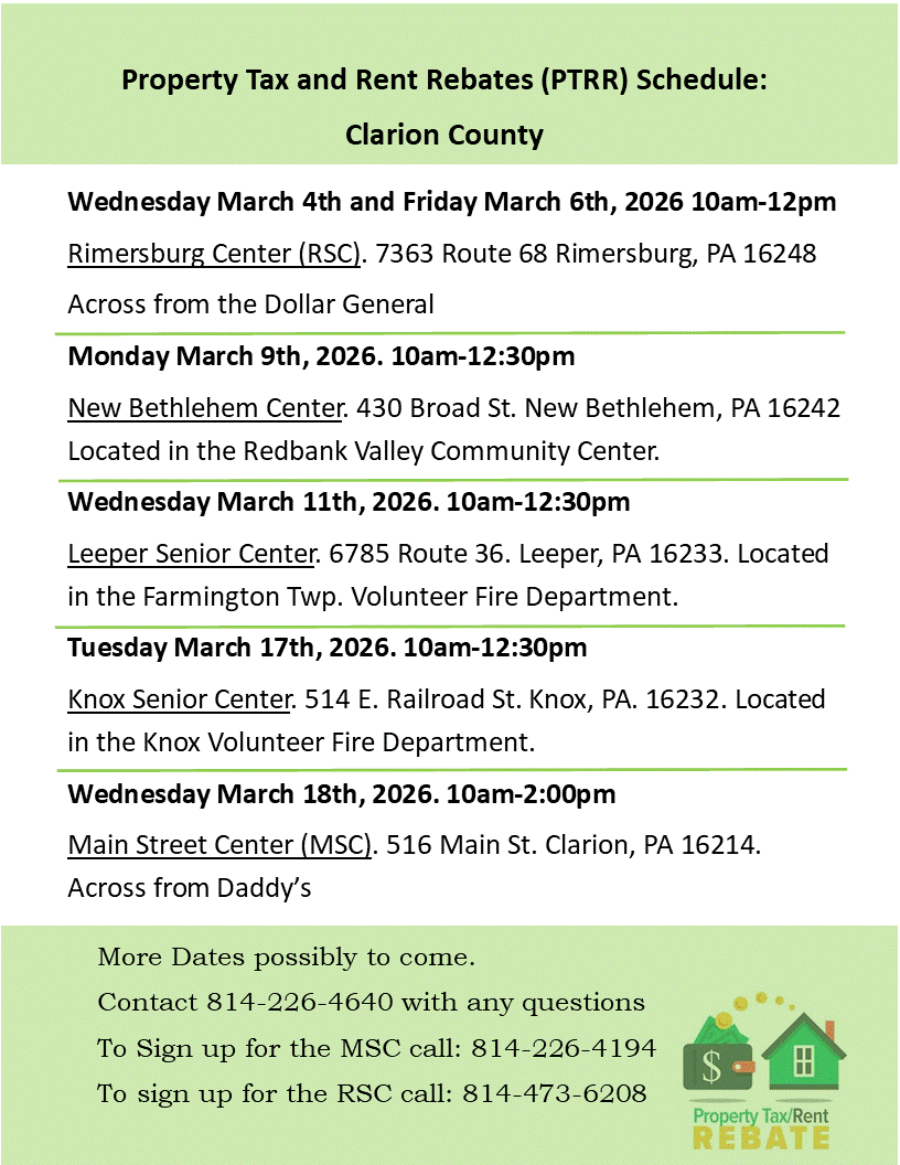 Clarion Area Agency on Aging is a registered 501(c)(3) nonprofit organization, and all contributions are tax-deductible to the fullest extent allowed by law. If you would like to discuss how your gift can make the greatest impact, please call our office at (814) 226-4640